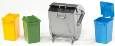Dieses Mülltonnen-Set ist perfekt zur Ergänzung der BRUDER Müll-LKWs. Sie erhalten hier drei kleine, farbige Tonnen in unterschiedlichen Farben und eine große Tonne. Die ideale Steigerung des Spielspaßes Ihrer Kleinen!