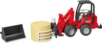 Seit über 50 Jahren entwickelt Schäffer Radlader für Landwirtschaft, sowie Garten und Landschaftsbau. Die 2000er Kompaktklasse gehört bei Schäffer zu den erfolgreichsten Baureihen überhaupt. Höchstleistungen auf engstem Raum zu bieten, das ist die Prämisse für diesen Lader. Dieses wichtige und überzeugend vielseitige Fahrzeug für jede erfolgreiche Landwirtschaft gibt es im Maßstab 1:16 jetzt in Kombination mit einer Ballengreifzange neu bei BRUDER. Für maximale Wendigkeit besitzt das Fahrzeug, wie auch das Echte, eine funktionierende Knicklenkung und auch der Ladearm und Schaufel funktionieren wie beim großen Vorbild. Für die Sicherheit der bworld Figur (nicht im Lieferumfang enthalten), welche bequem in den Fahrersitz passt, ist ein massiver Überrollbügel vorhanden. Für den Transport und die Verteilung von Stroh und Heu ist die neue Ballgreifzange ein überaus nützlicher Helfer, der jedem kleinen Landwirt dabei hilft, den mitgelieferten Rundballen in den Stall zu transportieren und abzuladen. Die Greifzange öffnet und schließt sich durch einfaches drehen am oberen Stellrad.