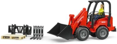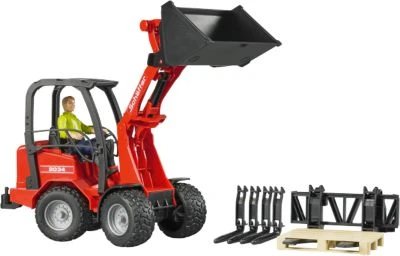 Seit über 50 Jahren entwickelt Schäffer Radlader für Landwirtschaft, Industrie, sowie Garten und Landschaftsbau. Der Schäffer Lader ist für hohe Förderleistung bei beengten Räumen konzipiert und bestens geeignet. Dieses wichtige und überzeugend vielseitige Fahrzeug für jede erfolgreiche Landwirtschaft ist nun neu im Maßstab 1:16 in die Bruder Kollektion hinzugekommen. Für maximale Wendigkeit besitzt das Fahrzeug, wie auch das Original, eine funktionierende Knicklenkung und auch der Ladearm und Schaufel funktionieren wie beim großen Vorbild. Für die Sicherheit der bworld Figur, welche bequem in den Fahrersitz passt, ist ein massiver Überrollbügel vorhanden. Die passende, bewegliche Figur, sowie ein Zubehörset, bestehend aus Ladegabeln und einer Palette runden dieses tolle Fahrzeug ab und sorgen für maximalen Spielspaß.